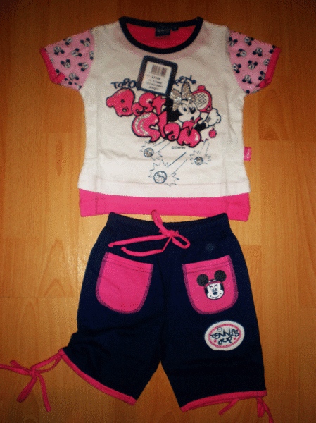 Костюм Минни итальянской фирмы Arnetta Disney. Материал: 100% хлопок. Отличное качество! Футболка украшена аппликацией. Шорты с карманами и удобным поясом на резинке. Экспорт из Италии.