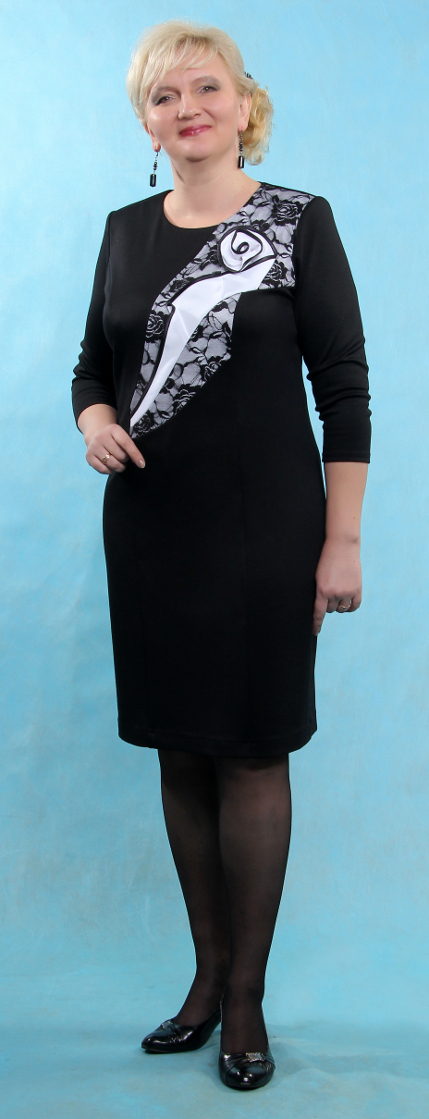Платье из трикотажного полотна 50%шерсть 45%п/э 5%лайкра с отделкой из кружева.